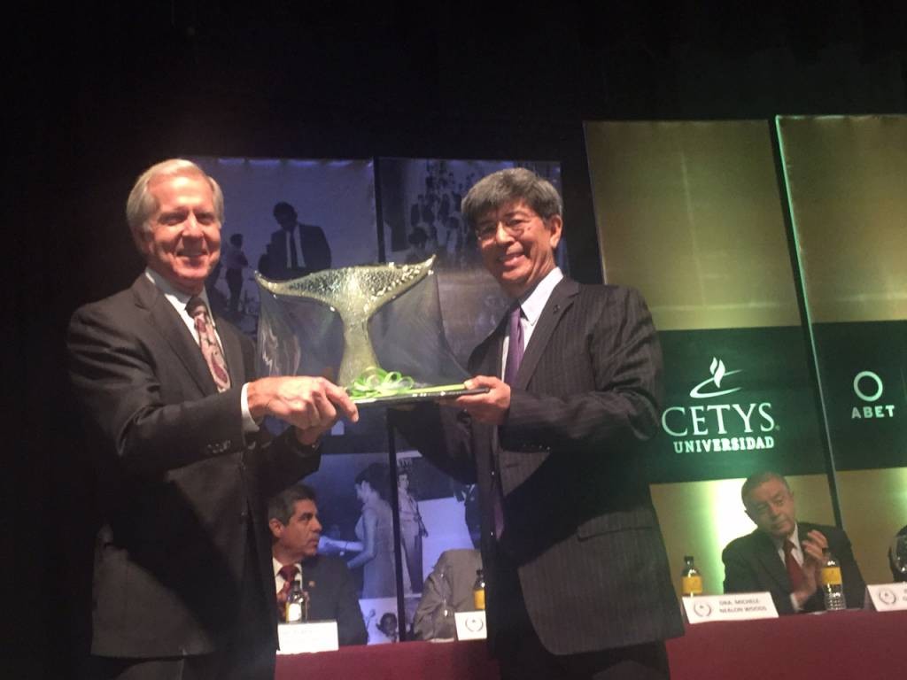 In addition to the panel discussion and as part of the anniversary celebration, CETYS also inaugurated a new building for its business school. In honor of this occasion, President Carter presented Dr. Fernando León García, President of CETYS University, a glass blown orca whale tail as a gift to be displayed in the building. “CityU and CETYS have had a strong academic collaboration,” said President Carter, “with faculty, students, and staff traveling back and forth between campuses, like the strong orcas traveling from the waters of the Puget Sound to the warm waters of Baja California.” This gift of appreciation was bestowed on the heels of the 10th anniversary of the partnership between CETYS and City University of Seattle.