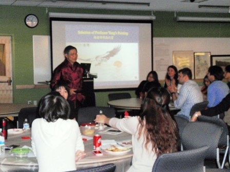 The CityU community was welcomed in a room traditionally decorated in red where the Chinese Art of Painting and Calligraphy Training Group shared their work with us. The director of the art group, Professor Hongduan Yang , is an alumnus of CityU. During the event, guests were entertained by Chinese New Year’s music, viewing the paintings, learning about calligraphy, and receiving personal New Year’s wishes. Everyone also enjoyed traditional Chinese dishes such as chicken with hot chili sauce, chow mein, fried rice, and fortune cookies provided by a local Chinese restaurant.