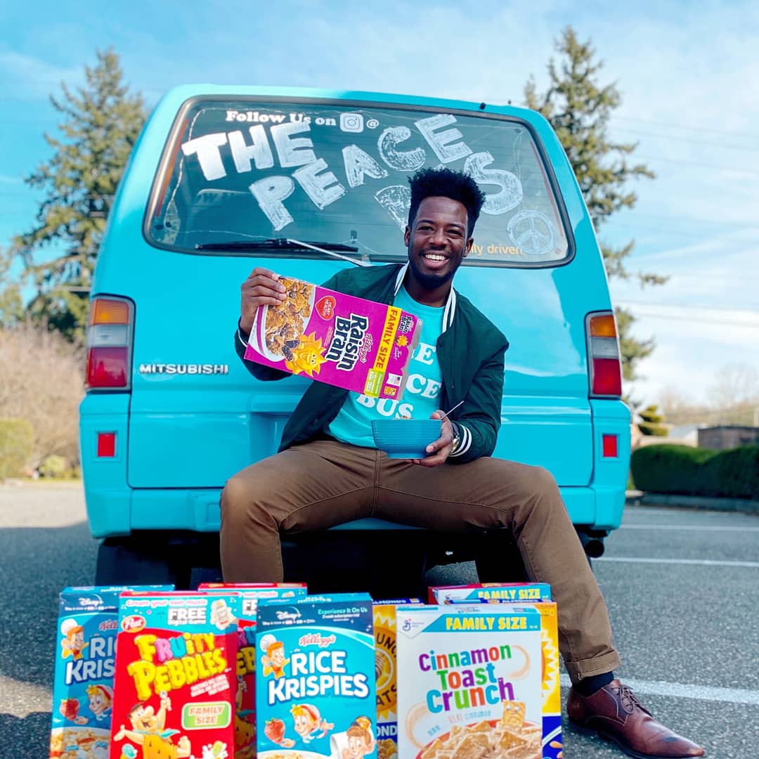 “I was looking at a (Tacoma) News Tribune article,” Kwabi said, “The school districts have food, but some parents can’t take their kids to go get food there, but then I thought I could take food to them.” After doing some research, the Peace Bus didn’t have the correct permits to transport perishable food, but Kwabi wasn’t giving up that easily. “I found out I could transfer non-perishable items and The Peace Bus Breakfast Fund was created. I made a post on Facebook, letting the community know that I would be delivering cereal, and all they had to do was text me if they needed food.” Kwabi said.